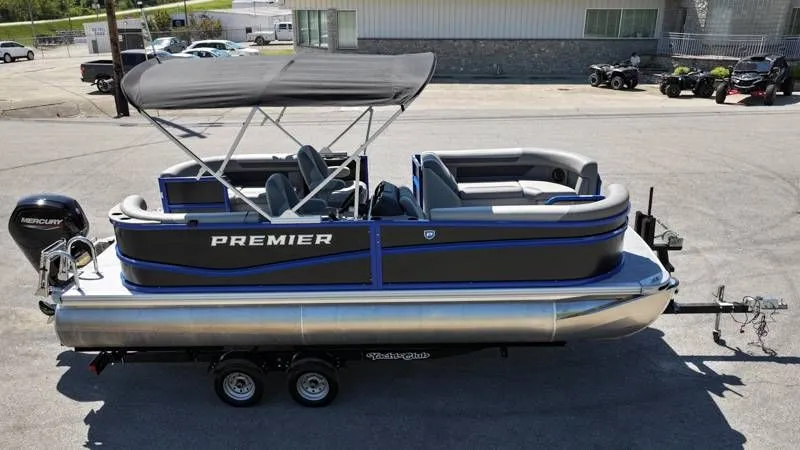 2026 Premier 200 Sunscape RF-CL, 2026 Premier 200 Sunscape RF-CL SELECTED OPTIONS Single-Panel Color- Black Railing Color- Sapphire Blue Standard Badging Vantage Tube Film- None Telescoping 4" Wide Step Ladder Fiberglass Helm Color- Mountain Gray Furniture Base Color- Mountain Gray Furniture Accent Color- Charcoal Coastline Flooring Color- Thatched Shale Filler Couch- None Fast-Charging USB-A/USB-C in Helm Dual Analog Gauges Wet Sounds MC- Round, RECON 6.5" Speakers (4) 10' Power Arm Front Biminis and Extensions- None Bimini Frame Color- Satin Silver Canvas Cover- Onyx Two-Tube Chassis 20" Transom Rig Mechanical Engine 115HP Max Rating Mercury Mechanical 115HP and Below Mercury 90 ELPT Command Thrust FourStroke Rotary Steering 30gal Fuel Capacity Extended Performance Sheeting Transportation Protection- Cover Only