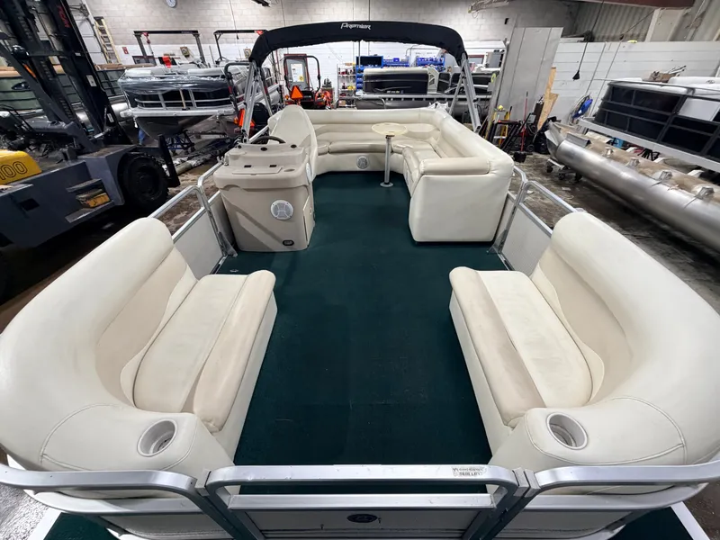 2004 Premier 210 SunSation Pontoon & 60HP Yamaha Fourstroke. Interior seating includes 2 Wrap Around Couches, an L-shaped couch and bucket style Captain's Chair. Features include Bimini Top, Table, Bow Swim Platform, Removable fold down Swim Ladder, Speedometer, Tachometer, Fuel, Volt and Trim gauges, Pyle Bluetooth Stereo, and courtesy lights. Additional features include Ski/Tow bar and Cooler built into front of Helm. Rated for 10 people, Warranty Is Included Trailer Not Include But Available For Purchase Stock# 1854 $12,995 Visit Us @ www.boatworldmn.com or Call (763) 434-9655 Boat World 21155 Highway 65 NE East Bethel, MN 55011 For More Used And New Pontoons Come on out and see what we have in stock!