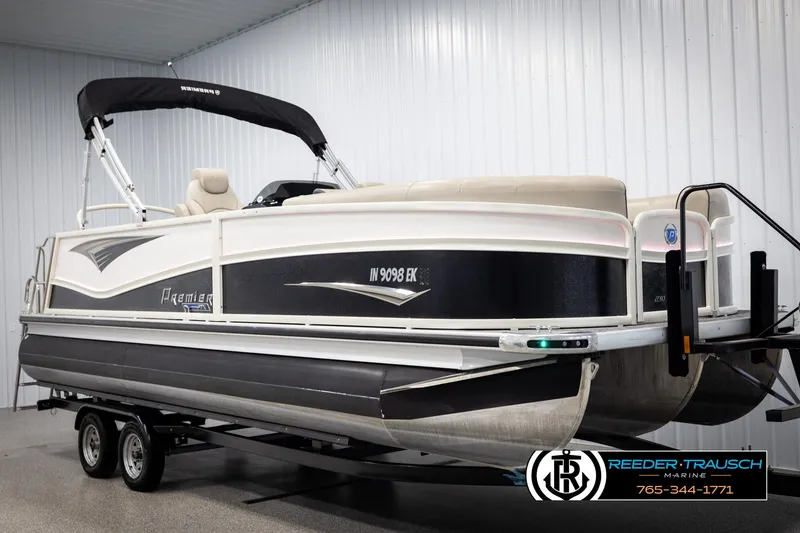 The 2022 Premier 230 Solaris RL is a versatile tritoon boat designed for both leisure and performance on the water. This used model measures 23 feet in length and has a beam of 8.6 feet, providing ample space and comfort for up to 15 passengers. Its sleek black and white design is both classic and eye-catching, complementing any waterfront setting.