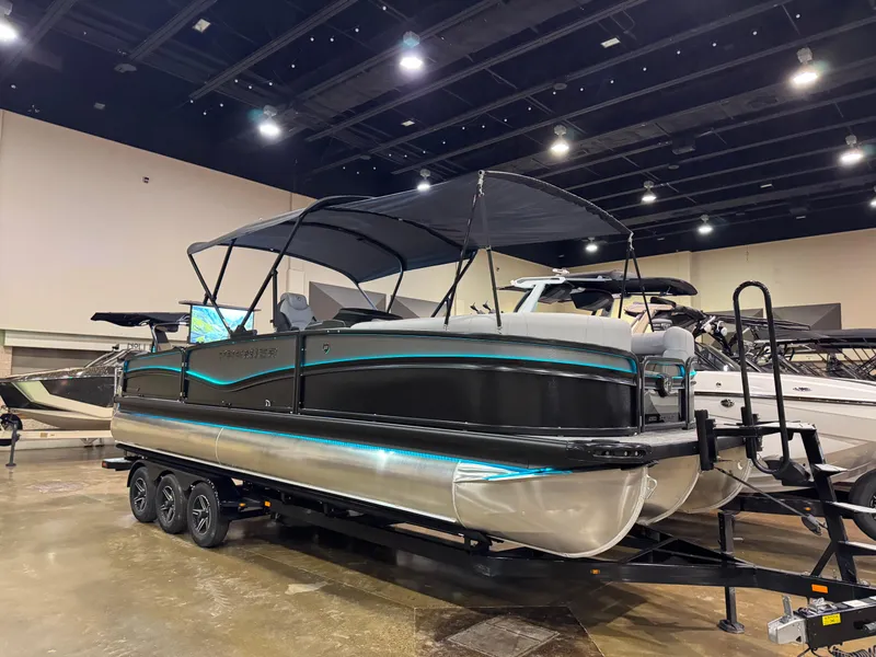 This is absolutely one of the coolest boats we have ever seen! Premier has absolutely knocked it out of the park with this one! College football saturdays on the water are now in demand with the all new Rear Social layout. With a swiveling TV in the back of the boat, you can watch football from in the lake or you can hope up in the boat at the rear table, lower it into the bed position and cuddle up for movie night on the water. Premier continues to push the envelope for what a pontoon can be and lets not forget that they have the boat handling and riding hull on the market. As if that isn't enough they offer the absolute best 10 year bow to stern (legitimately) warranty on the market! Get to our lot and see this thing today! Call us at 423-833-8000 to schedule your showing. Trailer is not included but available to be added!