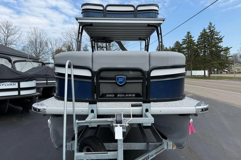 Experience the perfect blend of performance and upscale comfort with this stunning 2025 Premier 250 Solaris Upper Deck Tritoon. Designed for those who want it all, this premium tritoon delivers smooth, powerful handling on the water while offering a spacious, thoughtfully crafted layout ideal for entertaining family and friends.