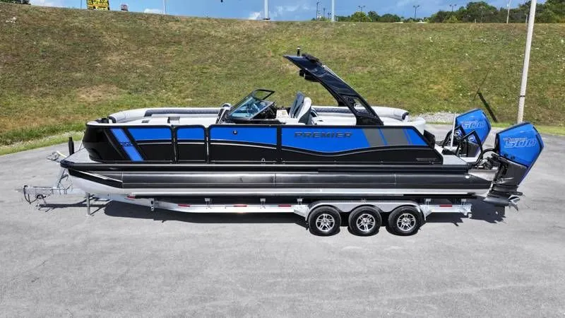 2025 Premier 270 SuperSport RF, 2025 Premier 270 SuperSport RF Features dual fiberglass helms with full wraparound windshield coupled with both rear and bow starboard and port side couches. Fall in love in seconds. The performance infused DNA of SuperSport has a pulse all its own. Featuring our revolutionary PTX Technology, the seamless flow of sculpted fiberglass accents, and available twin-transom upgrade capable of supporting up to 1000-horsepower, it has the chops to back up its accelerated styling. Of course, SuperSport has a sophisticated side as well, so you can catch the sunset and then sit back and take it all in. SELECTED OPTIONS Panel(s) Color: Single Panel Color Single Panel Color: Black Lower & *CUSTOM BLUE UPPER* Railing Color: Midnight Black Exterior graphics package: Standard Badging + Side Panel Graphics Eclipse Package: ECLIPSE PACKAGE: Blackout styling Vantage Tube Film: Black Ladder Upgrades: Twin Transom Staircase Gates: Side Port Gate Fiberglass Helm Color: Black Furniture Base Color: *CUSTOM COLOR* Furniture Accent Color: *CUSTOM COLOR* Flooring Color: Slate Teak Changing Room Add-on: None Filler Couch: None Helm Mats: Woven - Flooring Match Navigation Gauges & Displays: Simrad 12" Display Sound System: JL M6 + 6 Speakers + Subwoofer Biminis & Towers: Luxe Tower Front Biminis & Extensions: None Bimini Frame Color: Chrome Canvas Color: Onyx Tower Speakers: Tower M6 8.8" speakers (2) Ski Tow Bars: Ski Pylon (Twin Engine) Chassis Type: PTX36 (27' Tubes) Twin Transom: Twin Transom Transom Height: 25" Transom (Twin Transom) Order Engine Method: Rig Twin Engines Engine Max Horsepower: 1000hp Max Rating Select Engine Make: Mercury Engine Pre Rigging: Mercury Twin 500R V8- Electric JPO Engine Model: Mercury 500R XL & 500R CXL V8 Steering: Electr. Joystick (w/Pre-Rig) Fuel Tank Size: 80 Gallon Props (x 2) Batteries (x3)