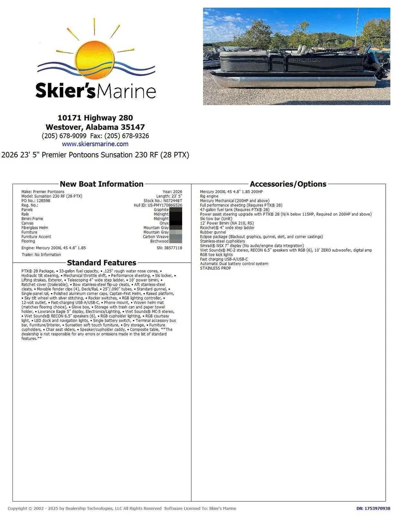 2026 Premier Sunsation 230 RF (28 PTX), The 2026 Premier Sunsation 230 is a versatile, 23-foot pontoon boat known for blending luxury with high performance. Built on Premier's innovative PTX tritoon chassis, it offers a smooth, agile ride more akin to a runabout than a traditional pontoon, with enhanced stability and handling even in rougher water.
