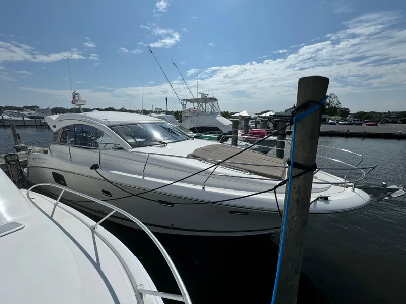 The 440 S Prestige Express combines a performance hull from America's Michael Peters Yacht Design with a modern high-style interior by Garroni Design of Italy. The result is a surprisingly roomy express cruiser that combines romance, spaciousness and efficiency into a most appealing and affordable package.