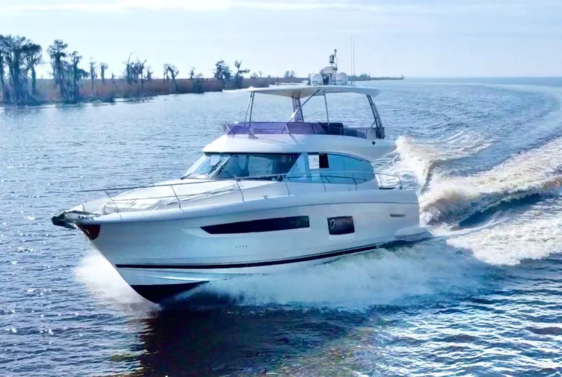 Superb opportunity on a beautiful Prestige 550 Fly! She sits in a freshwater, covered slip in Madisonville, LA, just 45 minutes north of New Orleans, and ICW-accessible Lake Pontchartrain! She shows fantastic, she's up to date on bottom paint and services and is truly a turn-key vessel. She sports all the desirable features, including joystick controls (upper helm, lower helm and cockpit), hardtop, hydraulic dinghy/swim platform, 3 stateroom+crew layout, teak cockpit, Sat TV, FLIR camera, low-hour Cummins power and much more! She has just been detailed and is always standing tall in her shaded, covered slip. Not included, but available is a painted-to-match Evolution jet tender. Come take a look!
