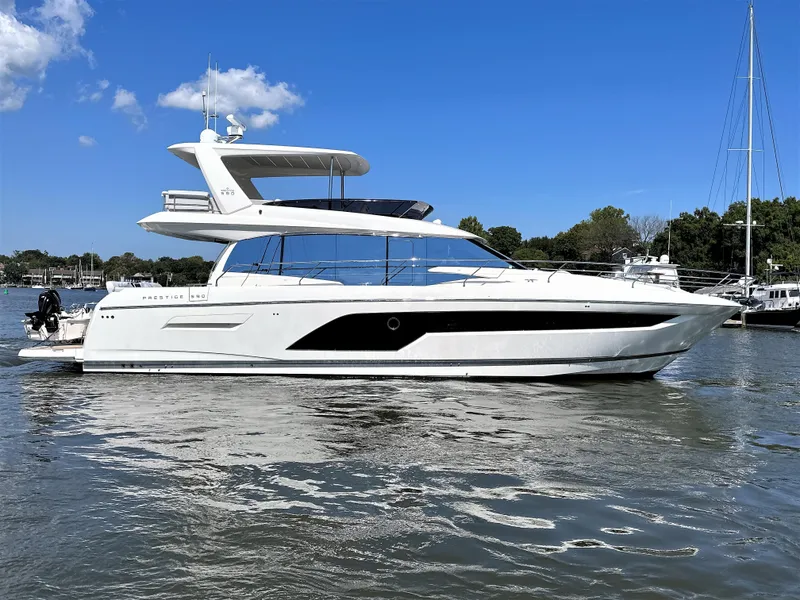 The Prestige Yachts 590 is one of the most exquisite 60' yachting platforms in the world. The Prestige 590 boasts one of the finest, most voluminous layouts in the class, with massive interior spaces both in the salon as well as belowdecks. This single-owner Prestige Yachts 590 is about as like-new as a pre-owned yacht can get. She is in immaculate condition, has enormous amounts of remaining warranties, and is equipped with every highly desirable factory option and upgrade: