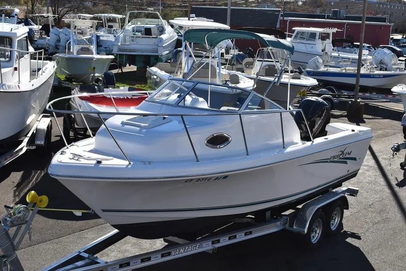 You are viewing for sale by Diamond Marine of Connecticut a beautiful 2016 Pro-Line 20 Express Walkaround cabin fishing boat, motor and new trailer package. This 20ft offshore fishing boat is powered by a Mercury 150XL 4stroke outboard w/ 495hrs of well cared for use, hydraulic steering and stainless-steel prop. This complete package includes a brand new I-Bem aluminum tandem axle trailer with disc brakes. Boat comes with many nice features- including a Bimini top w/ boot, Garmin 1042XSV GPS/Fishfinder, ICOM VHF Radio, Jensen Stereo, Cushioned V-Berth 2 person sleeper, Porta potti toilet, Raw water washdown, Dual battery w/ switch, Transom swim platform w/ ladder, Livewell, Fishboxes, Anchor locker w/ anchor and line, Under gunnel rodholders, Swivel helm chairs, self-bailing deck and more. Pro-Line has been building award winning family fishing boats since 1968. And the Pro-Line Express series continues the tradition with the new 20 Express. Whether your passion is fishing, cruising, diving, sleeping onboard. or all of the above, the 20 Express offers all the amenities to keep you and your family on the water and in the fun!