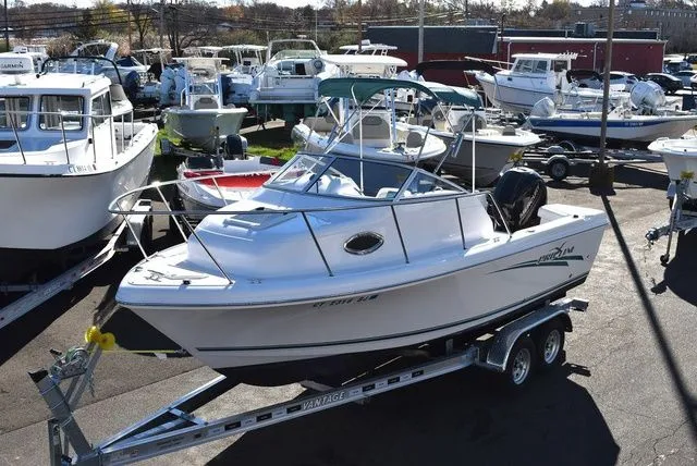 You are viewing for sale by Diamond Marine of Connecticut a beautiful 2016 Pro-Line 20 Express Walkaround cabin fishing boat, motor and new trailer package. This 20ft offshore fishing boat is powered by a Mercury 150XL 4stroke outboard w/ 495hrs of well cared for use, hydraulic steering and stainless-steel prop. This complete package includes a brand new I-Bem aluminum tandem axle trailer with disc brakes. Boat comes with many nice features- including a Bimini top w/ boot, Garmin 1042XSV GPS/Fishfinder, ICOM VHF Radio, Jensen Stereo, Cushioned V-Berth 2 person sleeper, Porta potti toilet, Raw water washdown, Dual battery w/ switch, Transom swim platform w/ ladder, Livewell, Fishboxes, Anchor locker w/ anchor and line, Under gunnel rodholders, Swivel helm chairs, self-bailing deck and more. Pro-Line has been building award winning family fishing boats since 1968. And the Pro-Line Express series continues the tradition with the new 20 Express. Whether your passion is fishing, cruising, diving, sleeping onboard. or all of the above, the 20 Express offers all the amenities to keep you and your family on the water and in the fun!