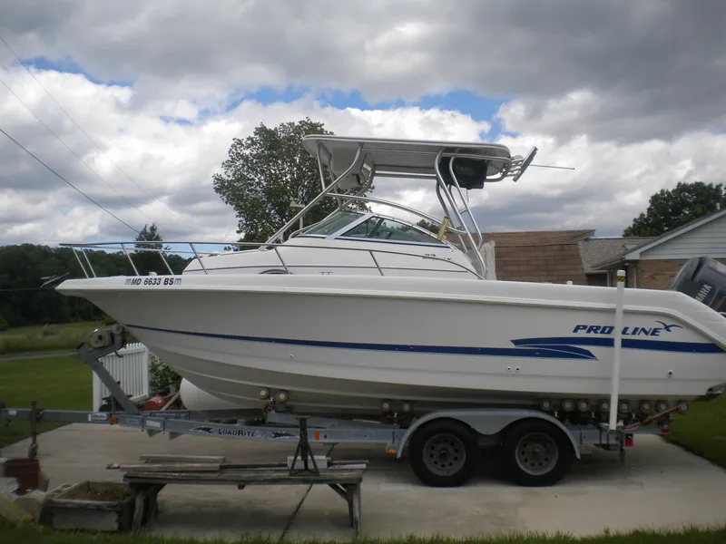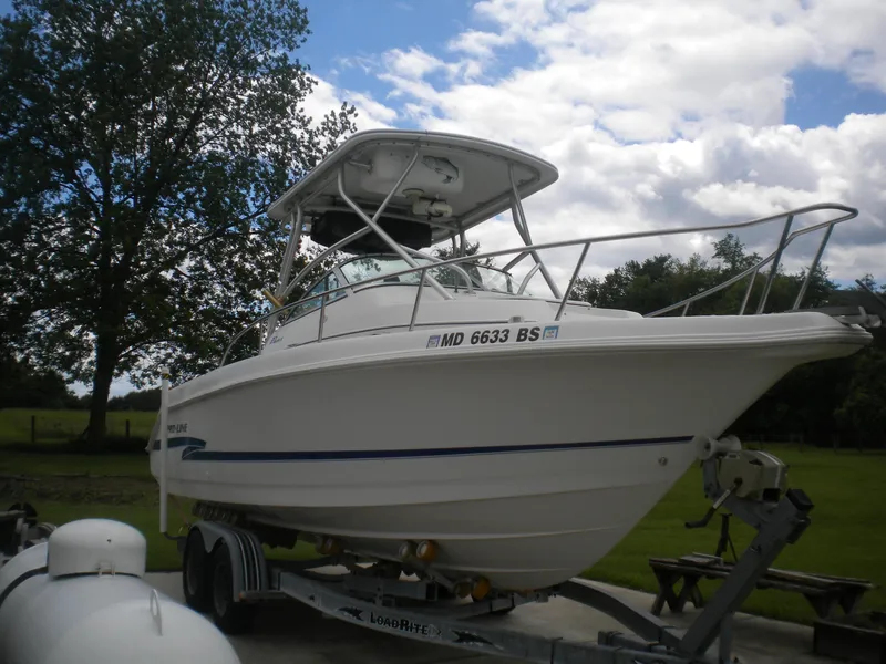 Super clean walk around fishing machine that has been trailer kept with no bottom paint since new. Loaded with factory hardtop and enclosure, electronics box, fish boxes and bait well and Load Rite roller trailer with electric winch.