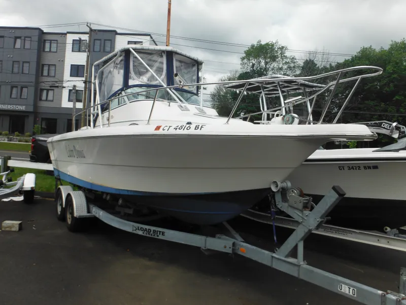 Ready for summer fishing and cruising, this well-kept 1997 Pro-Line 231 Walkaround features durable, wood-free construction and a recently serviced 225hp outboard. A full-featured 23-footer with solid hull, comfortable overnighting space, and fishing-ready setup. Includes a 2012 Load Rite trailer.