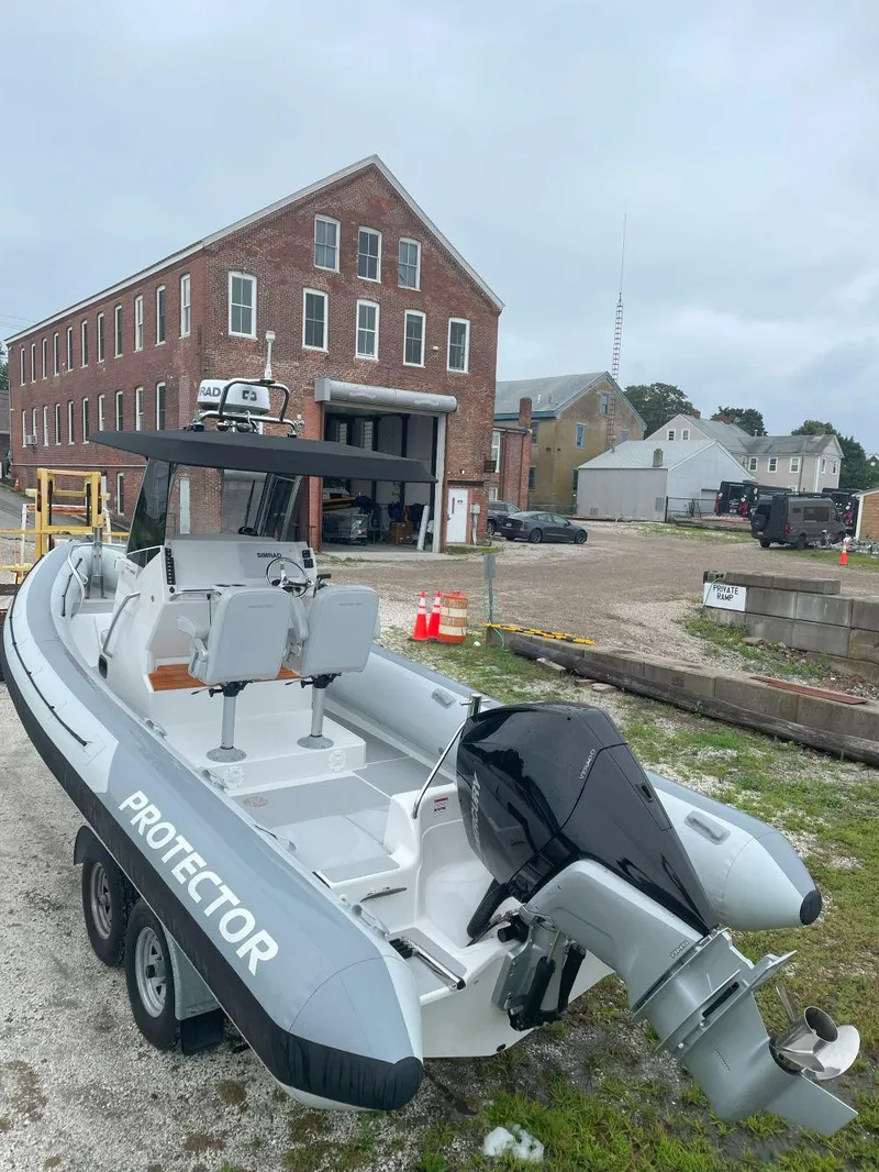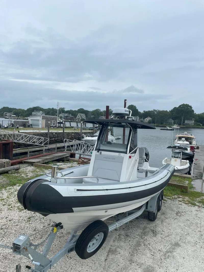 This is a NEW Protector 250 Chase, hull molded in 2023 and fit out for delivery to our dealership in 2024. It has a 250HP Mercury Verado engine. Light Grey tubes with Grand Cayman light grey upholstery. It includes the new windshield design for maximum protection while underway; Forward Sampson Post with handrails; Two shock mitigating helm chairs; Trim Tabs; A 3 section/4 person rear bench seat; Electric head with holding tank and a full suite of Simrad Electronics. Trailer also available. Price Reduced for quick sale please inquire.