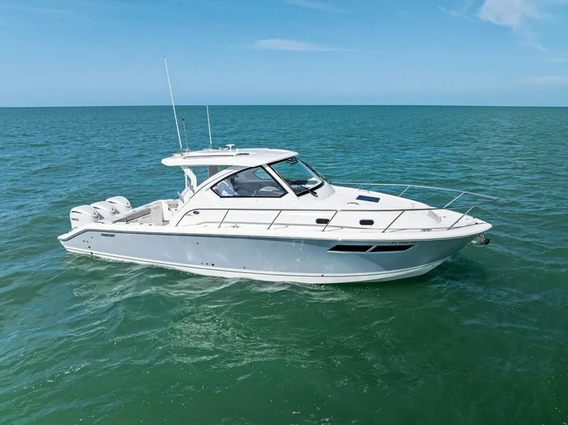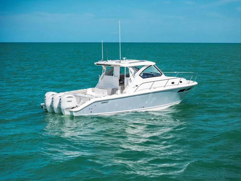 The OS 355 encompasses the winning formula you've come to expect from Pursuit. A single-piece optically clear windshield, exterior fabrics and finishes with exciting seating arrangements give you every reason to dive into a Pursuit Offshore. Standard triple Yamaha F300 engines give you the power you've been looking for. The increased natural light through stylish hull-side windows, stainless-steel refrigerator and electrically actuated convertible berth/dinette are a few of the cabin features elevating this model with yacht-caliber appointments.