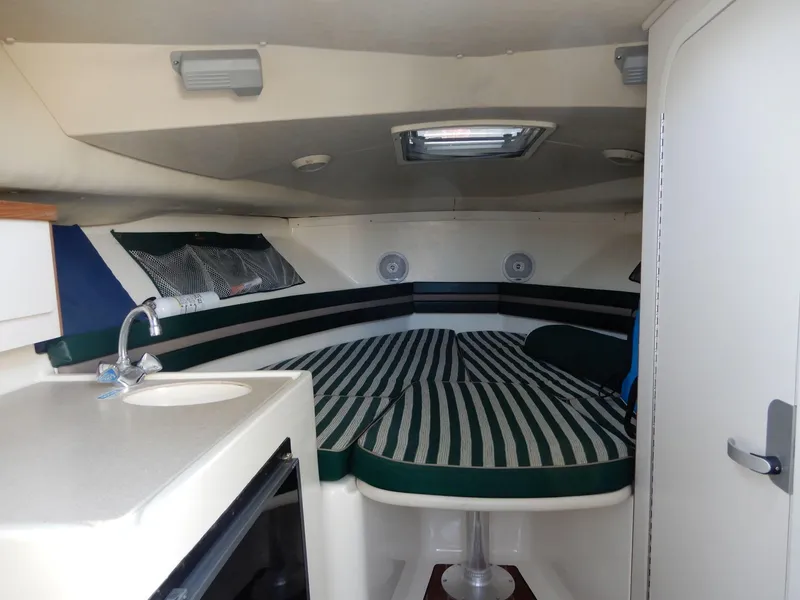 Inside there is a nice sized "V" berth for two and an enclosed head with shower. It's also a very stylish and sharp looking boat.