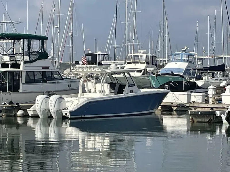 This Pursuit S 328 Sport is very well maintained inside and out! The owner has spared no expense keeping the gelcoat and cosmetics waxed and polished. All soft good are in nice condition along with a spotless cabin. The Yamaha 300's with 280 hours are serviced annually with warranties extended to 2029 with On-Water a policy that mirrors Yamaha's warranty and can be used by any Yamaha technician. She truly shows like a captain maintained vessel.