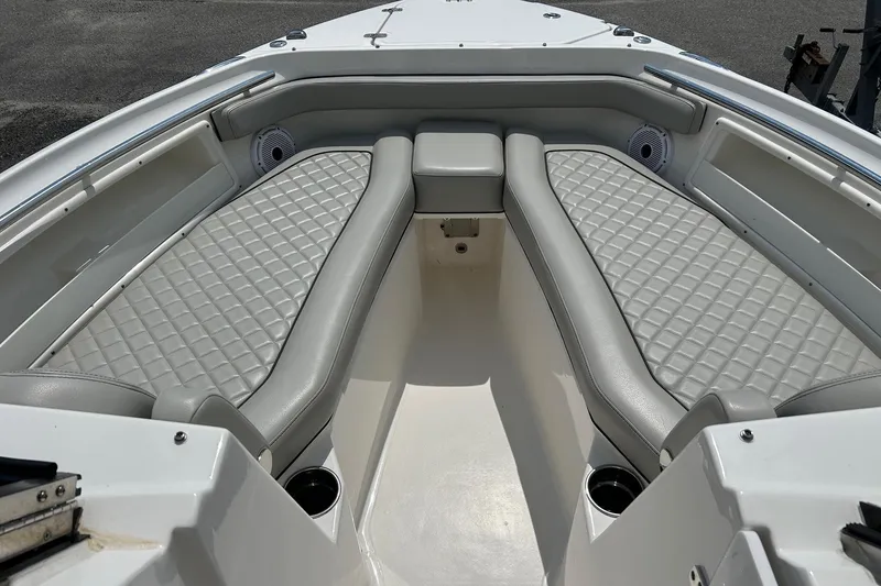 - Drink Holders: (2) Bow, (1) Helm Coaming Box, (1) Companion Coaming Box, (1) Portside Aft Facing Seat, (1) Behind Helm Seat, (4) Gunwales and (1) Transom Seat