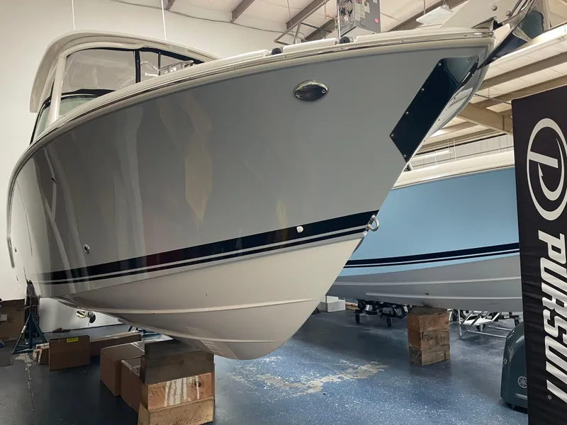 These hallmarks of the Pursuit dual console boat series are purposeful—allowing you to move seamlessly fore and aft through the center walkway and at every turn have a gorgeous view of the water. Fancy a fish dinner? With an LOA of 25' 8" and a significantly increased cockpit size and functionality over its predecessor, there’s plenty of elbow and angling room. Cruising around the bay? Everyone will find their favorite spot within the multitude of customer-requested seating configurations. Sandbar swim, anyone? Getting in and out of the water and cleaning your gear is easy with the optional bow boarding ladder with fresh water washdown.