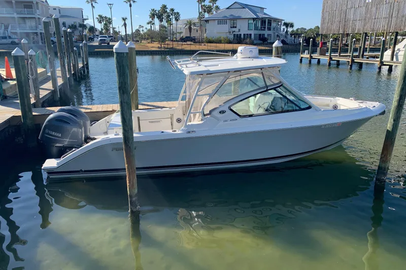 Another terrific opportunity on a late model, lightly enjoyed Pursuit from Blue Water Yacht Sales. This 266DC is powered by twin Yamaha F200s with only 53 hours of fun so far. Engine warranty through 2/1/2028. Service just completed. Better than new! Radar, Yamaha Helm Master with Joy Stick, Yamaha DEC electronic key switch, w/wireless key fob, Multimode Set Point and EX Autopilot, w/way point deceleration. Marine Head, Windlass, Raw Water Wash Down, Fresh Water Wash Down, Trim Tabs, Underwater Lights, Cockpit Eisenglass Enclosure, Bow Tonneau and much, much more!