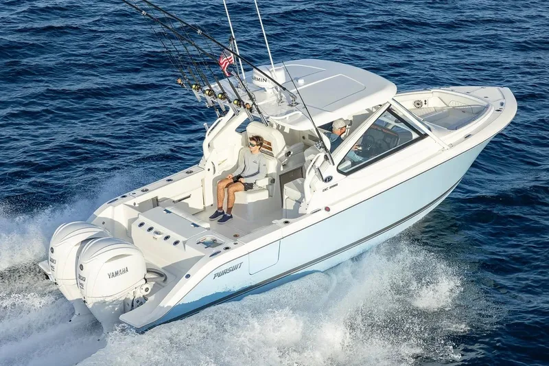 Introducing the 2026 Pursuit DC 286 Dual Console, a stunning new vessel that combines elegance with performance. With an overall length of 30 feet, this boat is designed for both comfort and adventure on the water. Its fiberglass hull features a Deep Vee shape, ensuring a smooth and stable ride even in choppy conditions. Powered by twin Yamaha F300 V6 outboard engines, each delivering an impressive 300 horsepower, this boat promises exhilarating speed and agility. The thoughtful design includes ample space for relaxation and entertainment, making it perfect for family outings or social gatherings. The Pursuit DC 286 is equipped with modern features that enhance your boating experience, ensuring you have everything you need for a day on the water. With its sleek lines and robust performance, this dual console boat is a remarkable choice for those seeking both style and functionality.