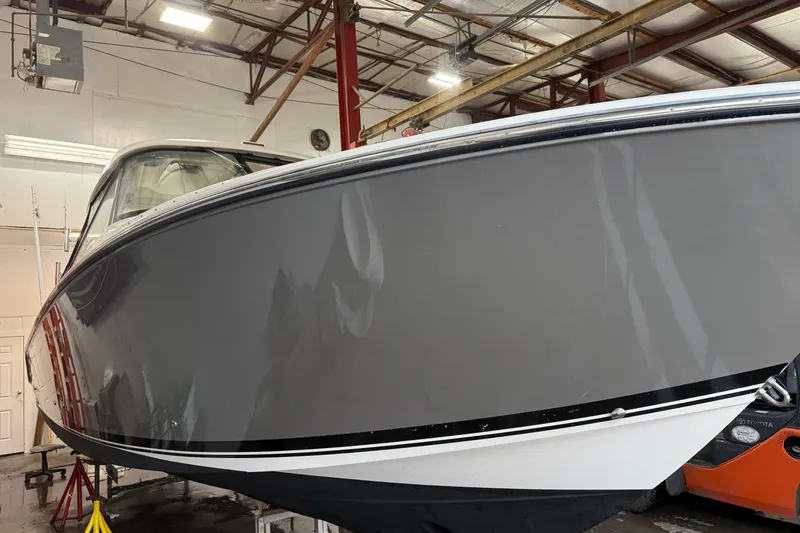 Bow thruster, Titanium hull color w/black bootstripe, white painted engines w/platinum graphics, dual Garmin 7612 XSV GPS/MAP, Airmar B164 transducer, NMEA 2000 starter kit, Yamaha gateway, Garmin VHF, Garmin 48 mile XHD radar dome, spotlight w/remote, port/starboard hardtop hatches w/screens, blue/white underwater LED lighting, Sunbrella aft curtain-black, bow cover, instrument cover and all factory standard equipment!
