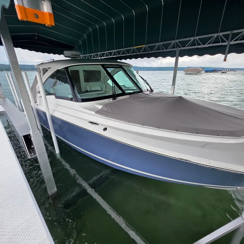 Freshwater Pursuit DC. Under 100 hours, hoist kept with no bottom paint. Generator, cockpit air/heat, joystick, cockpit grill, twin Garmin screens, Radar, autopilot, aft sunshade and more.