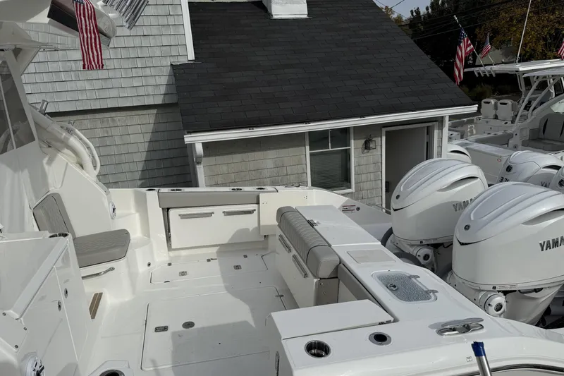 2026 Pursuit OS325 Offshore powered with Twin Yamaha F350s in stock now.