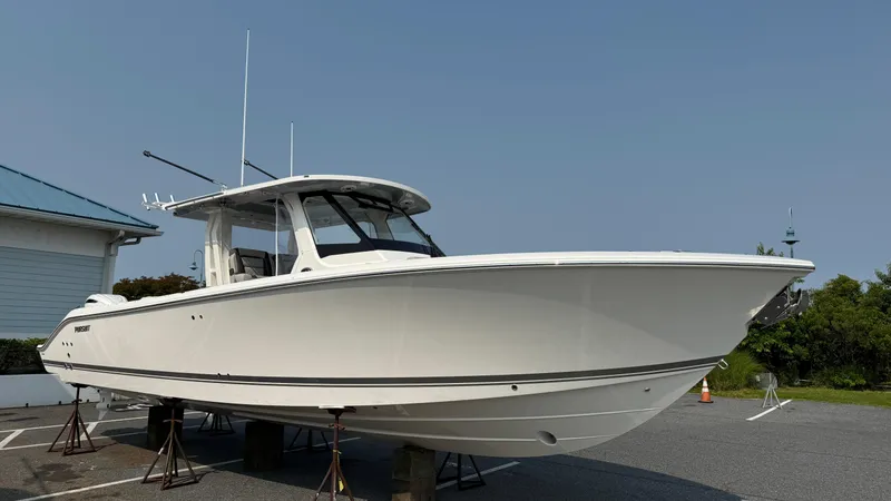 The Pursuit S 328 broadens the range of the Pursuit's popular Sport Series. The athletic 32 features an oversized fiberglass integrated hardtop and windshield system, updated classic sheerline, through-stem anchor system and integrated transom extensions. The exterior styling is complimented by a forward wrap-around lounge at the bow, just opposite of the forward facing seating in the console.