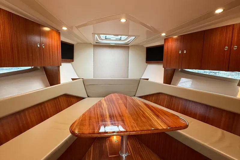 Natural light filtering through six hull side windows port and starboard and three deck windows overhead, adds to the openness of the cabin layout. A galley, head, convertible dinette and full beam midcabin are expertly engineered and appointed. The forward convertible dinette becomes an island berth when you pull each seat inboard. Add the single or twin bed arrangement in the midcabin and 4 adults can overnight in complete comfort.