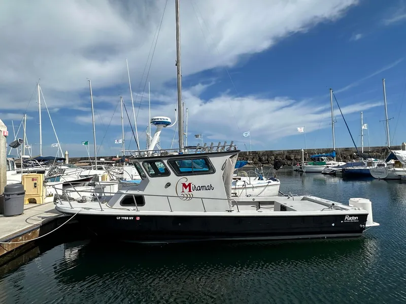 This Radon 26 has the desirable twin Volvo diesel 200 horse inboard engine package. Sleeps three. Furuno radar, gps, chart plotter & fish finder as well as a Garmin gps. Nine rocket launchers and a bait tank. She also has a galvanized triple axle Pacific Trailer.