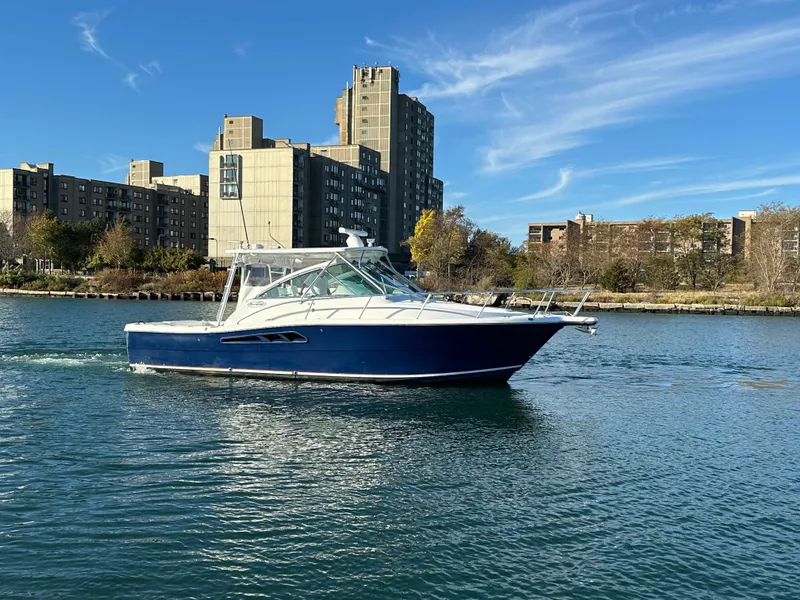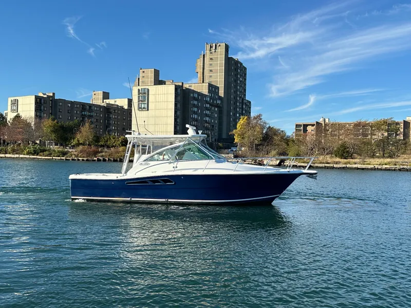 You have found it!! This original 484-hour Rampage 34 is a well-regarded sportfishing yacht known for its performance, versatility, and solid build. Our just "traded in" ONE owner Rampage will not disappoint you! When we took ownership of this boat, we assessed its structural and mechanical systems to ensure everything is working properly and safe to operate. I personally delivered the boat from Osterville to Hingham and was very impressed with its ease of handling, ride and array of electronics. This yacht was purchased brand new on Cape Cod and spent its entire life in the Osterville area where it received platinum service twice a year from the dealership where it was purchased. A boat ahead of its time, this vessel was built to provide easy maneuvering with twin Volvo Penta IPS 500 370hp engines and Volvo helm and joystick controls, docking has never been easier! No expenses were held back as she was equipped with two Garmin 7212 chart plotters at the helm, FLIR Night Vision, Garmin VHF 200, and Garmin Autopilot. When it's time to go fishing, she is equipped with a live well, starboard cockpit bait prep station with tackle storage, outriggers, and plenty of rod holders. The Kohler 9kw generator, helm deck AC and heat with 4 side cockpit enclosure with aft drop curtains are sure to keep you cool and warm as the seasons change. Additionally, this Rampage has an island forward berth layout, air and heat both in the cabin and at the helm, teak and holly flooring to the salon, ice maker, windlass, refrigerator. So... You could buy an early 2000s 35 Cabo or 35 Carolina Classic with 3000 hours for the same money, or you could by this One Owner, 10 years newer, 485 original hour Gorgeous 34 Rampage! Don't miss out on this opportunity to own a low hour, well equipped sportfishing yacht!