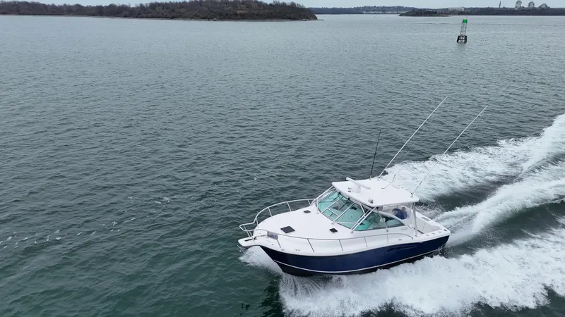 You have found it!! This original 500-hour Rampage 34 is a well-regarded sportfishing yacht known for its performance, versatility, and solid build. Our just "traded in" ONE owner Rampage will not disappoint you! When we took ownership of this boat, we assessed its structural and mechanical systems to ensure everything is working properly and safe to operate. I personally delivered the boat from Osterville to Hingham and was very impressed with its ease of handling, ride and array of electronics. This yacht was purchased brand new on Cape Cod and spent its entire life in the Osterville area where it received platinum service twice a year from the dealership where it was purchased. A boat ahead of its time, this vessel was built to provide easy maneuvering with twin Volvo Penta IPS 500 370hp engines and Volvo helm and joystick controls, docking has never been easier! No expenses were held back as she was equipped with two Garmin 7212 chart plotters at the helm, Garmin VHF 200, and Garmin Autopilot. When it's time to go fishing, she is equipped with a live well, starboard cockpit bait prep station with tackle storage, outriggers, and plenty of rod holders. The Kohler 9kw generator, helm deck AC and heat with 4 side cockpit enclosure with aft drop curtains are sure to keep you cool and warm as the seasons change. Additionally, this Rampage has an island forward berth layout, air and heat both in the cabin and at the helm, teak and holly flooring to the salon, ice maker, windlass, refrigerator. So... You could buy an early 2000s 35 Cabo or 35 Carolina Classic with 3000 hours for the same money, or you could by this One Owner, 10 years newer, 485 original hour Gorgeous 34 Rampage! Don't miss out on this opportunity to own a low hour, well equipped sportfishing yacht!