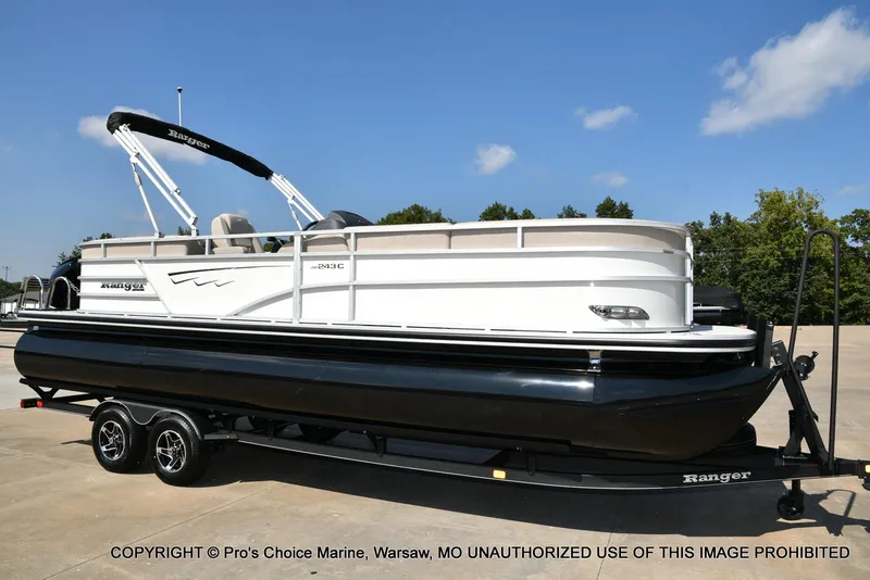 , SALE PRICE!!! $77095 Stock# R1738.......2025 Ranger 243C Cruise model Tri-Toon powered by a 250HP Mercury 4 Stroke!! This brand-new 2025 Ranger 243C with 250 Mercury 4 Stroke pontoon boat is designed for unforgettable days on the water-perfect for cruising, tubing, relaxing, or fishing with friends and family. With wide open space, plush seating, and smooth, quiet Mercury 4-stroke power, it's the ultimate lake day machine. Equipped with a tandem axle trailer with brakes, a boat cover, and one of the best warranty packages in the industry: ✔️ 10-Year Bow-to-Stern Factory Warranty ✔️ Lifetime Structural Warranty on the Boat ✔️ 5-Year Mercury Engine Warranty.......This new pontoon boat for sale includes batteries, a stainless steel prop, and all dealer freight & prep-no hidden fees. Full pricing and window sticker are available right here on our website. Call us today 1-877-827-2840.......financing available with approved credit and trades are always welcome at Pro's Choice Marine! ......................Specs: Deck Length: 24' 1''.......Deck Width: 102''.......Max. Recommended HP: 250 HP.......Fuel Capacity: 52 gal.......Pontoon Log Length: 24' 11''.......Pontoon Log Diameter: 26''.......Pontoon Log Material: 0.100 5052 marine alloy.......Max. Person Capacity: 12 persons.......Max. Person Weight: 1950 lbs.......Max. Persons/Motor/Gear Weight: 2800 lbs.......Interior Depth: 24''.......Average Dry Weight: 3016 lbs.......Average Package Weight: 5340 lbs.......Package Height: 8' 5''.......Package Width: 8' 6''.......Towing Length: 33'.......Storage Length: 33'
