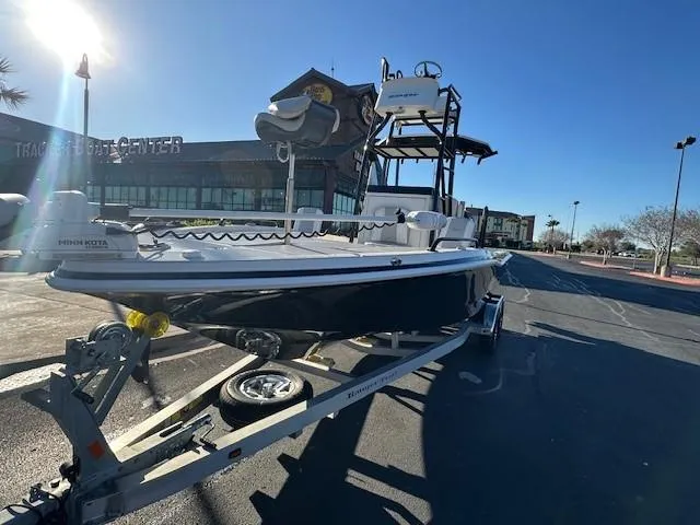 Whether you're towing teasers over the big blue or taming hero snook in the backcountry, this is your go-to hybrid rig. Famous for its soft ride and recognizable Carolina flare, this platform isn't just good looks. The 2510 comes standard with a stand-up 40-gallon livewell with 2,200 GPH aeration, a large storage console suitable for a Porta Potti, easy access to pumps, strainers and valves as well as all the comforts the family demands. A big fuel tank and 400-horse rating mean you can go farther, faster with economical performance. A wide-open layout hides storage everywhere, while delivering maximum stability and fishabilty. Standard with every 2510 is a dual-axle, aluminum-framed Ranger Trail® trailer that boasts sealed LED lights, four disc brakes and a center swing jack for the utmost in security and storage options. When you're ready to step up your game in a big bay boat, the Ranger 2510 will take you to the next level.