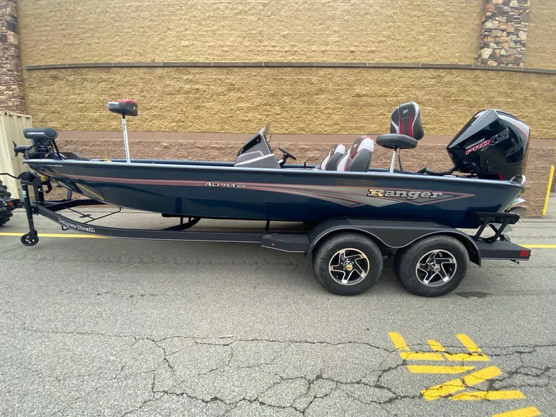 Ready to run, fish, and win with the big boys? Step up to the ALPHA 208, the only 20-foot aluminum bassin' rig worthy of the Ranger® name. Boasting more than five decades of tradition and innovation, the new ALPHA 208 delivers peak fiberglass-like performance with the durability and versatility of aluminum. The pad-bottom hull is sculpted for increased all-around performance, from a blistering holeshot and on-rails handling to a screaming top end. With 250 horses at the ready, you've got the muscle to hang with anyone, and with legendary Ranger quality, you'll be doing it with greater peace of mind. Smooth lines do more than please the eye; they're made to make you forget you're not in a top-of-the-line fiberglass rig. The setback transom increases hole shot and handling ability, while smoothing the flow of water to the prop, giving you more grip in all conditions. Because it's a Ranger, you know it's full of our signature foam flotation that unitizes the hull for our legendary One-Piece-Feel™construction. For the ultimate tournament-ready experience, opt for one of the Ranger Cup Equipped packages that adds a pair of 9" fishfinders and an upgraded trolling motor, packaged to make you more deadly and save you some cash. In the world of aluminum tournament rigs, the Ranger ALPHA 208 is the apex predator.