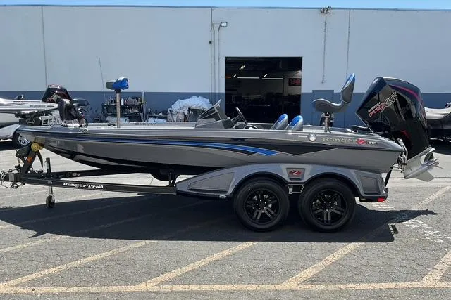 In the 18-foot class, the Ranger® Z518 stands alone in terms of all-out performance, fishability, and features. With the standard 150-horsepower Mercury®, you'll enjoy invigorating performance and economy, but opting for the 200-horse V8 FourStroke opens the door to a new level of all-out adrenaline-pumping exhilaration. And new for 2025 are standard push-to-close latches that eliminate the tripping hazard presented by twist-to-close latches. We've maximized storage space up front with a pair of 8-foot rod boxes, a gelcoat-lined, insulated in-deck cooler and spacious starboard gear box. The oversize casting deck and 97-inch beam deliver a stout, stable platform. A foam-filled core and strategically placed pultruded fiberglass material deliver unshakable solidity and a one-piece feel throughout. The console carries a full complement of precision gauges, the electronics of your choice up to 12" and stylish matte black accents. Integrated LED navigation lights, a recessed trolling motor pedal and SRS Soft-Ride™ seating round out this angler-centric rig that far outperforms its price tag. From daylight to dusk, the Ranger Z518 delivers features and value like none other.