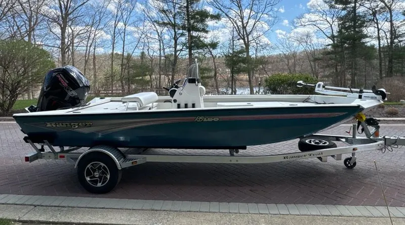 Built for bayous, bays and backwaters, the Ranger® RB190 is a shallow-drafting workhorse that's ready to take on inshore species with saltwater-savvy touches from the all-aluminum trailer to the grippy, easy-to-clean Rawhide™ interior coating and pad-bottom hull for a smooth ride and responsive handling. Dual rear jump seats add deck space when down or seating when up and a padded driver's leaning post flips down to expose a livewell that'll accommodate tournament-size reds. The wide, stable and shallow-drafting design complements the 115-horsepower rating and slices through chop with nimble and economical performance. BayStar® hydraulic steering and a binnacle-mount throttle on the fiberglass console keep you confidently in command. Huge gear storages, twin 8-foot rod boxes and integrated cup and tool holders accentuate the angler-friendly layout and make days on the water easy in this lake, bay and backwater master.