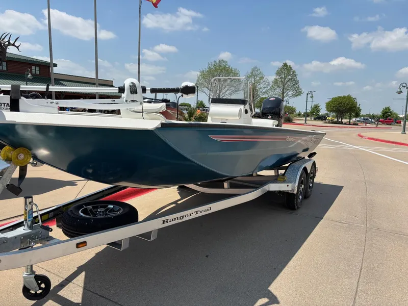 The RB200 packs more muscle in a bigger hull for greater performance, stability and capability to take you further than ever. The pad-bottom hull is designed for a dry ride that planes in a hurry, even in the shallows. The all-welded hull delivers strength in chop while precision steering and throttle control give you the ultimate in command. The wide, stable front casting deck delivers huge room for multiple anglers, and the interior is perfectly tailored for taking on inshore fisheries or a bass tournament with dual livewells and rod boxes, a huge in-deck storage and storage under the rear jump seats. At the helm, electronics up to 9" may be flush mounted and membrane-style switching delivers convenient simplicity. The ruggedized Ranger Trail® trailer is constructed with all-welded aluminum for the utmost in corrosion-resistant strength. Diamond plate fenders offer a step up and protection from road debris. A new camo version is more than just a paint scheme, this special rig features blacked-out badging, matte black closures and console railing, along with an all-black steering wheel for maximum concealment. No matter where your quarry swims, the enhanced capability of the RB200 is designed to Dominate Inshore and Nearshore.