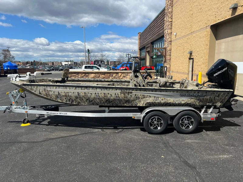 The all-new RB210 packs more muscle in a bigger hull for greater performance, stability and capability to take you further than ever. The pad-bottom hull is designed for a dry ride that planes in a hurry, even in the shallows. The all-welded hull delivers strength in chop while precision steering and throttle control give you the ultimate in command. The wide, stable front casting deck delivers huge room for multiple anglers, and the interior is perfectly tailored for taking on inshore fisheries or a bass tournament with dual livewells and rod boxes, a huge in-deck storage and storage under the rear jump seats. At the helm, electronics up to 9" may be flush mounted and membrane-style switching delivers convenient simplicity. The ruggedized Ranger Trail® trailer is constructed with all-welded aluminum for the utmost in corrosion-resistant strength. Diamond plate fenders offer a step up and protection from road debris. A new camo version is more than just a paint scheme, this special rig features blacked-out badging, matte black closures and console railing, along with an all-black steering wheel for maximum concealment. No matter where your quarry swims, the enhanced capability of the RB210 is designed to Dominate Inshore and Nearshore.
