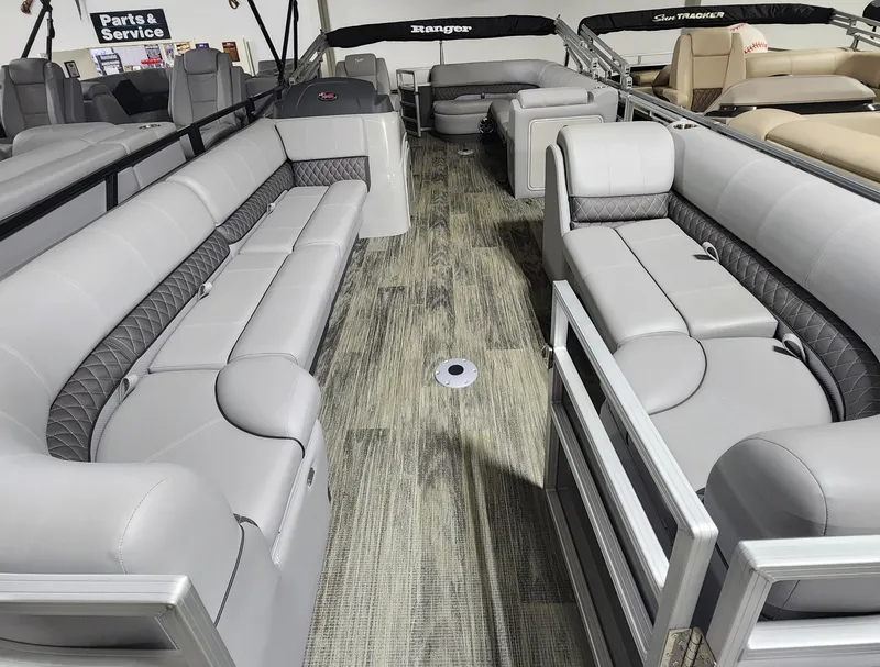 With a deck big enough for any undertaking, the Ranger® Reata® 220C is an easy-to-maneuver platform that gives up nothing in capacity while boasting a full complement of high-end touches inside and out. Chrome bezels surround LED navigation and docking lights on the redesigned fencing. Gates equipped with stainless steel hardware provide entry to the plush deck, highlighted by an updated helm seat and fully featured console complete with no-feedback steering and an array of gauges. A Dowco EasyLift™ 10-foot Bimini top keeps things cool while a wealth of cupholders and an under-console cooler storage keep drinks close at hand. When you need to escape into the outdoors, the 220C deliver all kinds of capability for any and everything.