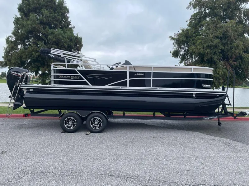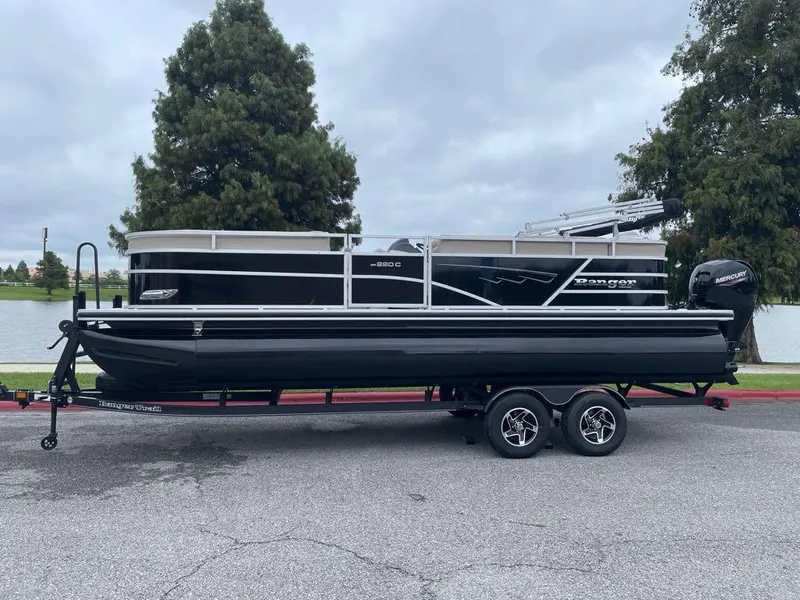 The 2025 Ranger® Reata® 220C is your new floating headquarters for your on-the-water adventures. With a long list of high-end features, a great amount of space, and quality craftsmanship, the Reata® 220C is a tough boat to beat. This cruise pontoon's 22'1" deck holds a crew of up to 10 and boasts an array of features built for fishing, relaxing, and fun in the sun. Cool off under the Dowco® EasyLift 10' bimini top as you relax in this pontoon's 3 corner lounges or the swiveling captain's chair at the helm. Customize your deck with the movable drink holders and tables. Stow gear and supplies in the under-seat storage compartments. The full-width aft swim platform has a mount for your optional ski-tow pylon and a fold-down ladder for easy reboarding for those who want to dive into the waters. Between the luxury, woven, cushioned floor, the 4-speaker, Bluetooth®-compatible Wet Sounds® stereo, and more, this pontoon is a big upgrade for your days on the lake. The 2025 Ranger® 220C comes standard with a 115hp Mercury® ELPT Pro XS® FourStroke Command Thrust outboard motor and has a recommended maximum 150hp rating.