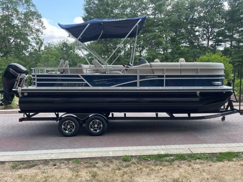 The 2025 Ranger® Reata® 220FC Fish & Cruise is a versatile pontoon built to please every style of lake adventurer, whether they're looking to catch dinner or just spend the day relaxing on the water. With room for a crew of 10, this Ranger® pontoon's 22'1" deck has plenty of features for everyone to enjoy. If you're looking to get some serious fishing done, take a seat in 1 of the 2 aft folding fishing chairs next to the 15-gal. aerated livewell, lockable rod box, and storage for your tools and gear. The fore portside deluxe chairs face inward toward a luxurious lounge to create a living-room space. The midship L-shaped lounge makes for a relaxing space that can be customized with a movable table and cup holders. Stow what you need for today's adventure in the enclosed in-console cooler compartment and under the lounges' seats. Between the Wet Sounds® stereo and 10' bimini top, this pontoon provides the ultimate floating space for your family and friends to live the lake life. The 2025 Ranger® Reata® 220FC comes standard with a 115hp Mercury® ELPT Pro XS® FourStroke Command Thrust outboard motor and has a recommended maximum 150hp rating.