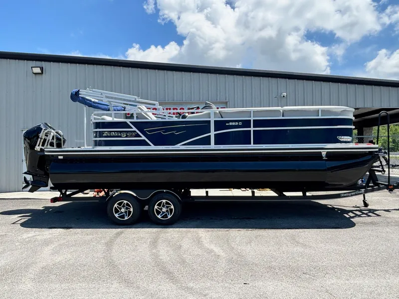 With the increased stability of a tritoon design and a long list of luxury features, the 2025 Ranger® Reata® 223C has much to offer to your weekend getaway. Set out and explore the lake from the luxurious comfort of this Ranger's 22'1" deck big enough for 11 passengers to enjoy. This pontoon boat caters to a wide range of explorers. Enjoy the water from the full-width aft swim platform with a fold-down boarding ladder. Chase those thrills with the optional ski-tow pylon. Simply enjoy being in the moment while relaxing in 1 of the 3 plush corner lounges. However you want to enjoy the lake, this is your next favorite home away from home. The captain can take full control at the top-tier console. This helm boasts a touch-screen dashboard with a 12-button switch panel. Relax in the adjustable, swiveling, and reclining captain's chair under the standard 10' Dowco® EasyLift bimini top. The 4-speaker Wet Sounds® stereo with Bluetooth® compatibility allows you to set the soundtrack to create your ideal day on the water. The 2025 Ranger® Reata® 223C comes standard with a 150hp Mercury® L FourStroke outboard motor and has a recommended maximum 200hp rating.