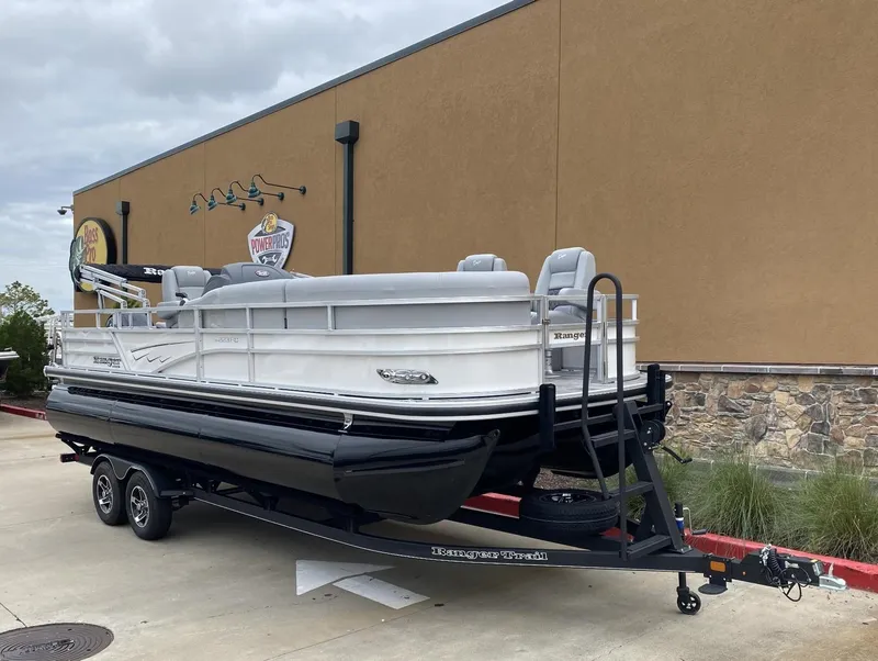 Maximize your fishing pontoon's space and power! The 2025 Ranger® Reata® 223FC Fish & Cruise delivers exciting days not only for anglers, but for everyone looking for fun on the lake. This is the biggest Fish & Cruise crossover in the Ranger® lineup-and the most luxurious. Its layout is engineered to give up to 11 friends and family a comfortable and exciting space. 2 lounges, 2 reclining port chairs with self-leveling arms, and a deluxe captain's chair are built for relaxing. The pilot sits before a fiberglass console equipped with a Wet Sounds® stereo, digital dash touch screen, and a 12-button switch panel over an in-console cooler compartment to keep beverages close by. Serious anglers can grab their setups from the lockable rod compartment and set up shop in 1 of the 2 chairs in the aft fishing deck. This deck also sports an aerated livewell and a holder for your rods and tools. If the sun's beating down overhead, expand the color-matched 10' bimini top for some shade so you can fish the day away. The 2025 Ranger® Reata® 223FC comes standard with a 200hp Mercury® L FourStroke outboard motor and has a recommended maximum 200hp rating.