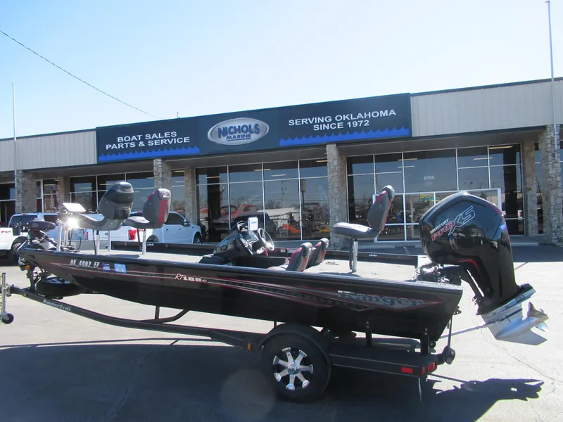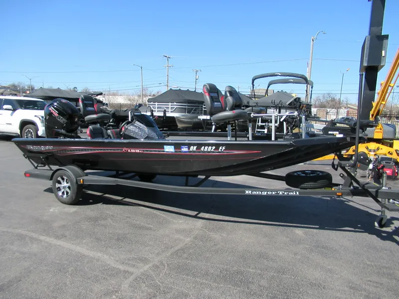 USED 2019 RANGER RT188c Rigged with Mercury 115 Pro XS 4S / Lowrance Elite 9 Back mount Console / Dual stack on bow Lowrance Elite 9 and Garmin 9 with Livescope on Bow/ Three Bank Battery Charger / Minnkota Ultrex 24V.Foot Control Trolling Motor / Auto Bilge Replaces Standard /Rod holders on Bow/ Single Axle Trailer with Spare Tire / Trailer Tie Downs / Transom Saver / Contact Nichols Marine in Tulsa: 918-838-2500