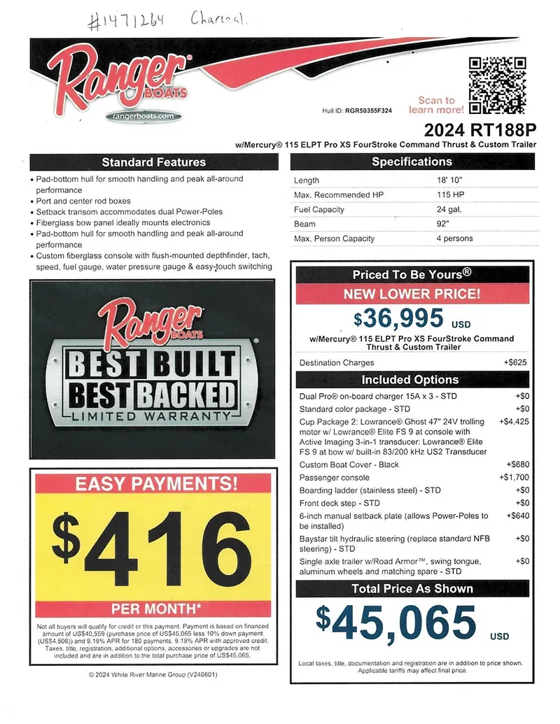 2024 Ranger RT188PSold
