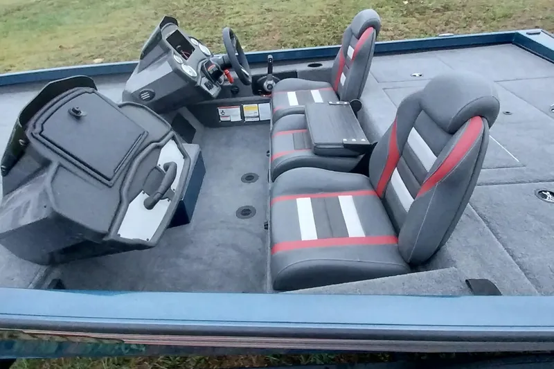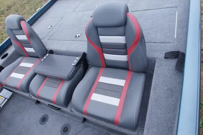 Custom fitted marine upholstery- driver/passenger bucket seating w/ center fold down & two matching fishing seats