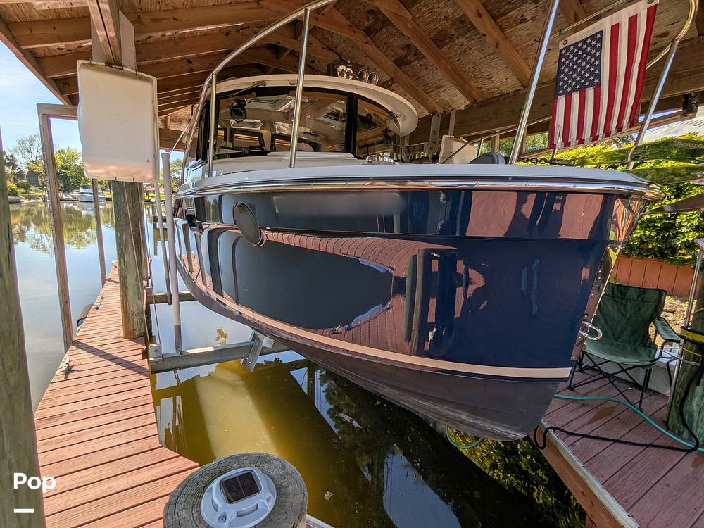 The 2020 Ranger Tugs is in great condition, with all features and accessories functioning as described by the seller. This boat has been very well maintained and is stored under a covered boat lift. The hull shines with no scratches. The interior is equally impressive, although the vinyl seating shows a little wear.