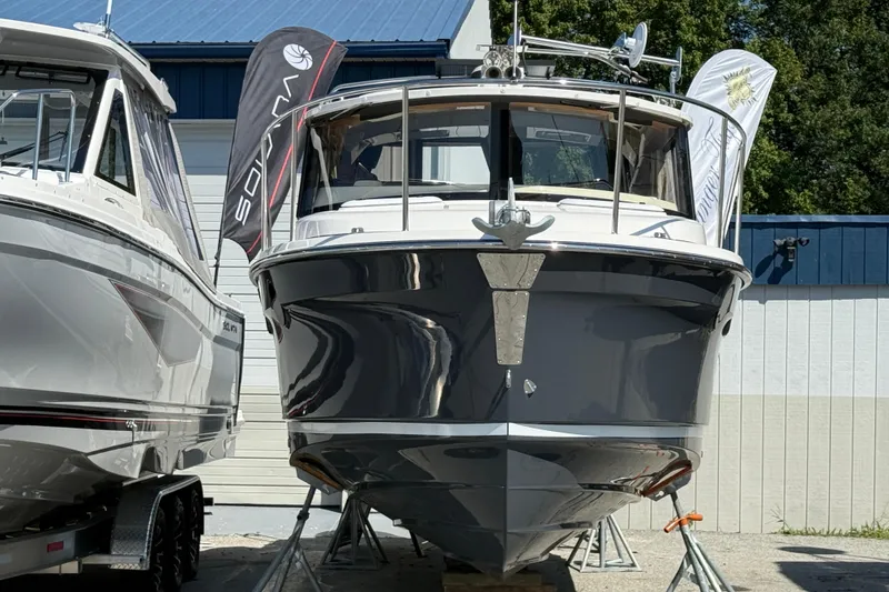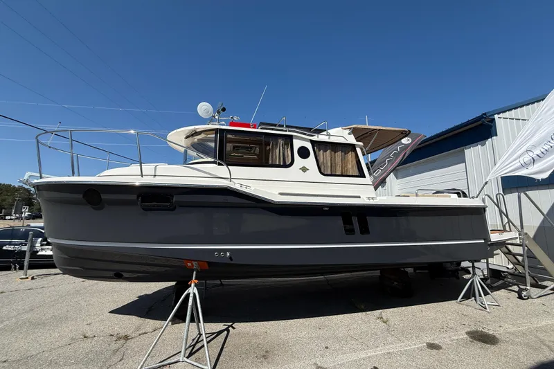 The 2026 Ranger Tugs R‑25 is a nimble cruiser built for comfort and versatility. With a GRP planing hull, it measures 28'5" LOA and 8'6" beam, easily towable yet spacious onboard. A 250 hp Yamaha F250 outboard, paired with electric steering (DES), trim tabs, Laminar Flow Interrupters, and an optional bow thruster, delivers smooth, confident handling.