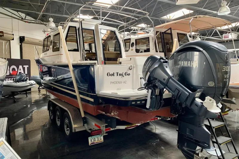 This is a lightly owned boat with an interior that looks like it has never been touched. The motor has less than 150 hours on it and the boat is ready to go. OEM Trailer included. Cruising without compromise is the name of the game for the R-27 from Ranger Tugs. Straight from the factory, your R-27 will be outfitted to cruise, fish, and play in comfort and style. Powered by the efficient and popular Yamaha F300 outboard motor, the R-27 doesn't waste time delivering you and your family to your next adventure. Enjoy peace of mind knowing that the boat is loaded with safety and navigation features, and will guide you safely on your passage and that when you arrive, the bow thruster will make docking a non-event.