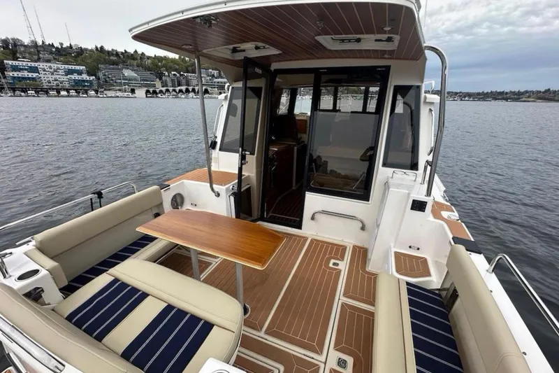 Flips Ahoy is an exceptionally well‑kept 2021 Ranger Tugs R‑29 S (Sedan), Northwest Edition, stored indoors in dry Arizona and maintained with a level of care that sets the boat apart. Powered by the Volvo D4 320 hp diesel with just 445 hours, Flips Ahoy is equipped for effortless cruising with bow and stern thrusters, Garmin navigation, Webasto diesel heat, and a long list of thoughtful upgrades added in 2024-2025.
