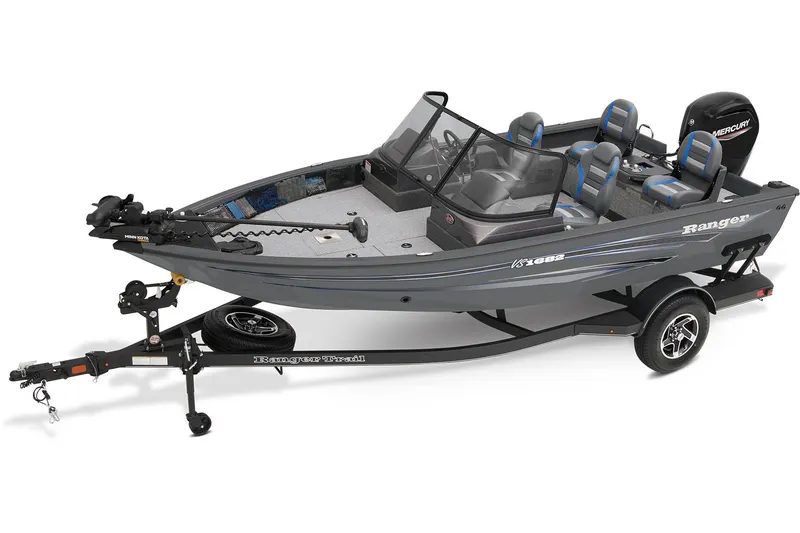 The Ranger® VS1682 SC Angler is designed to tame swells and rough water like a big deep V, but in a shorter size that's long on legendary Ranger quality. The VS1682 SC Angler has a wealth of features built in from the factory that offer unmatched on-the-water comfort, control and performance. Power trim at the console and bow, hydraulic steering, aerated livewells fore and aft and a single fiberglass console are just a few of the standard niceties. From there, a host of options are available to precisely suit your needs. Regardless of how you outfit your VS1682 SC Angler, the wide beam offers rock-like stability and ample workspace to play fish and rig gear while the deeper V hull is designed to keep you dry and riding smooth in big water. Cavernous storage for tackle and huge wells for live bait ensure that you won't ever be short on gear, while a 25-gallon fuel tank will keep you trolling for hours. Rated up to 115 horsepower, the VS1682 SC Angler punches well above its weight.